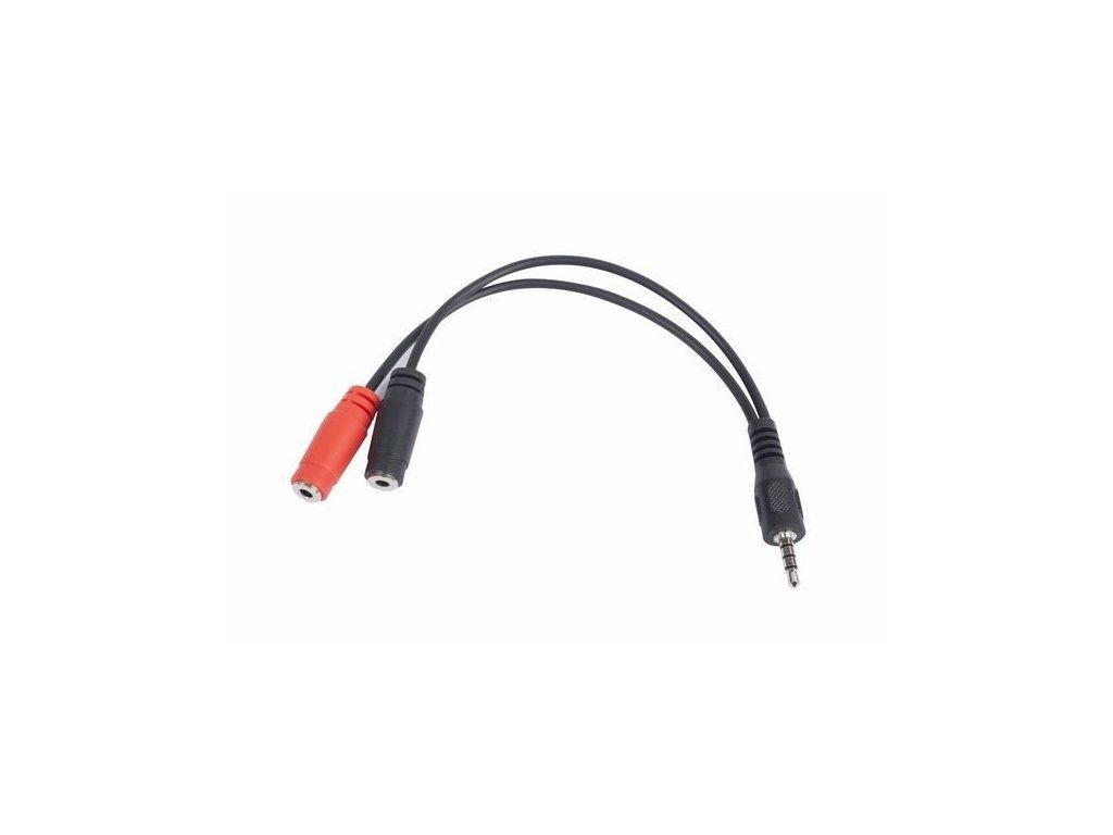 Kabel CABLEXPERT rozdvojka jack 3,5mm (4 pólový) na 2x3,5mm M/F, 20cm, černý