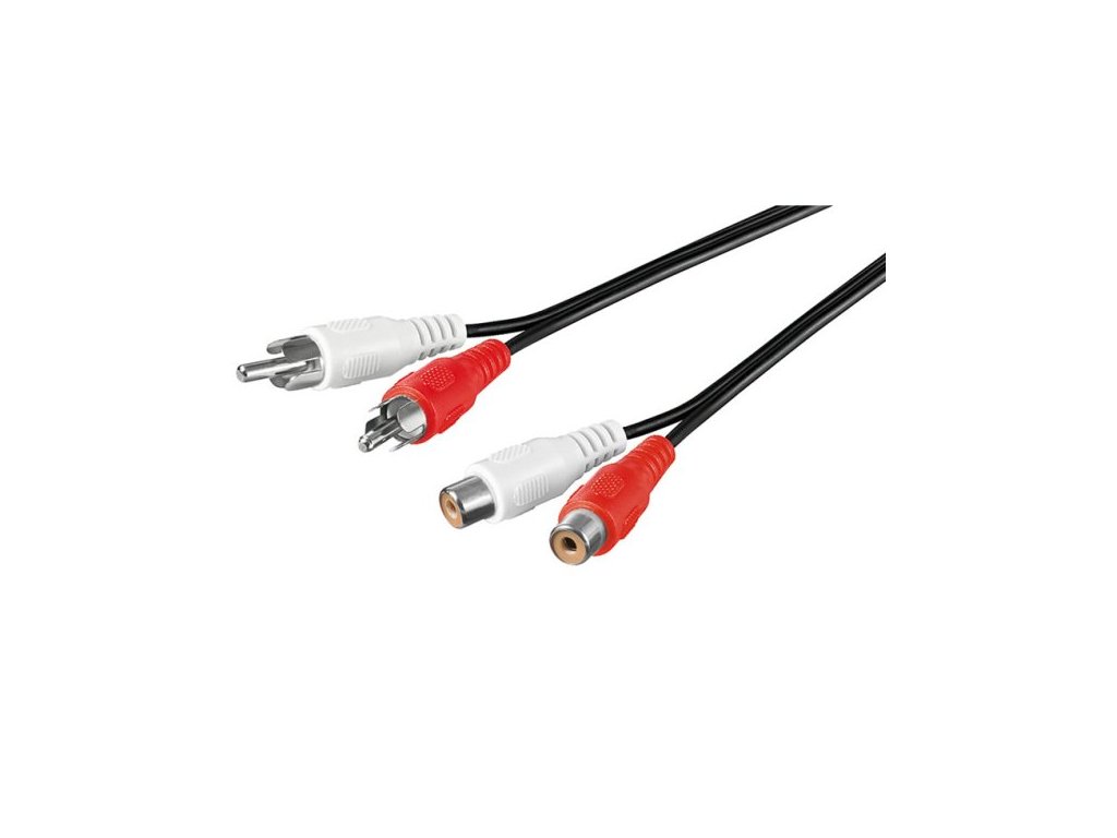 Kabel pro prodloužení spojení dvou audio zařízení zvukovým signálem stereo kvality. Na obou stranách jsou 2 konektory RCA (cinch).