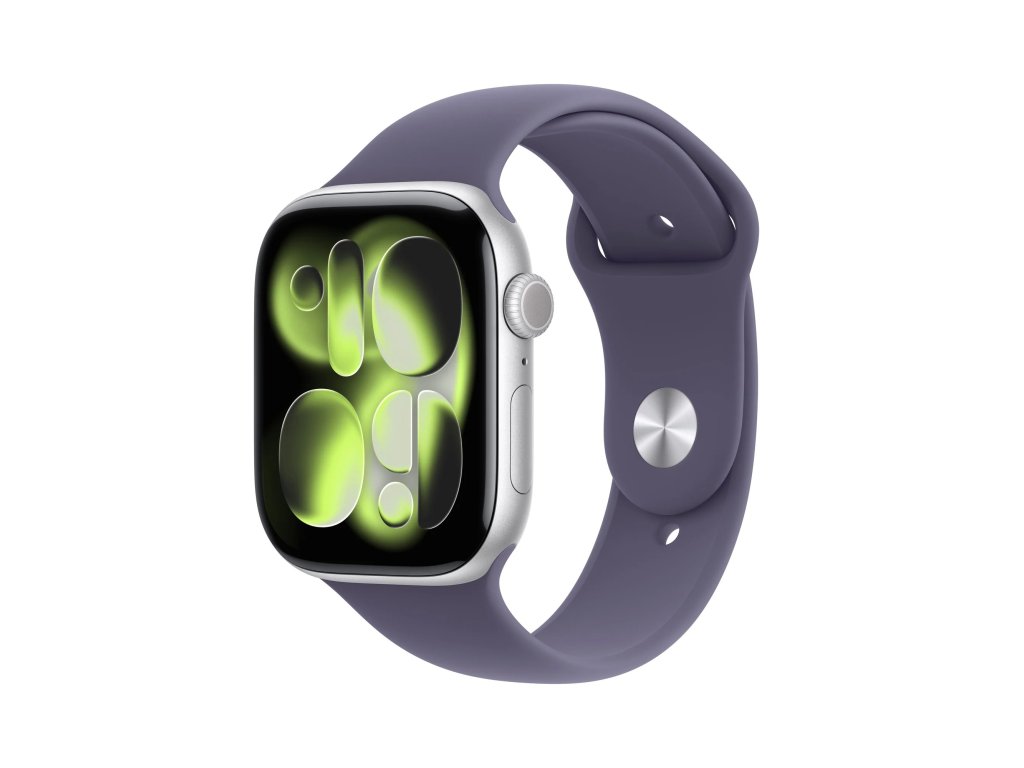Apple Watch Series 11 Sport Band stříbrné/mlžně fialové S/M *pro zápěstí s obvodem 140–245 mm *korunka Digital Crown s haptickou odezvou *reproduktor/mikrofon