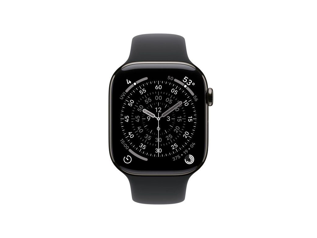 Apple Watch Series 11 Cellular Sport Band břidlicově šedé/černé S/M * pro zápěstí s obvodem 130–200 mm * korunka Digital Crown s haptickou odezvou * reproduktor/mikrofon