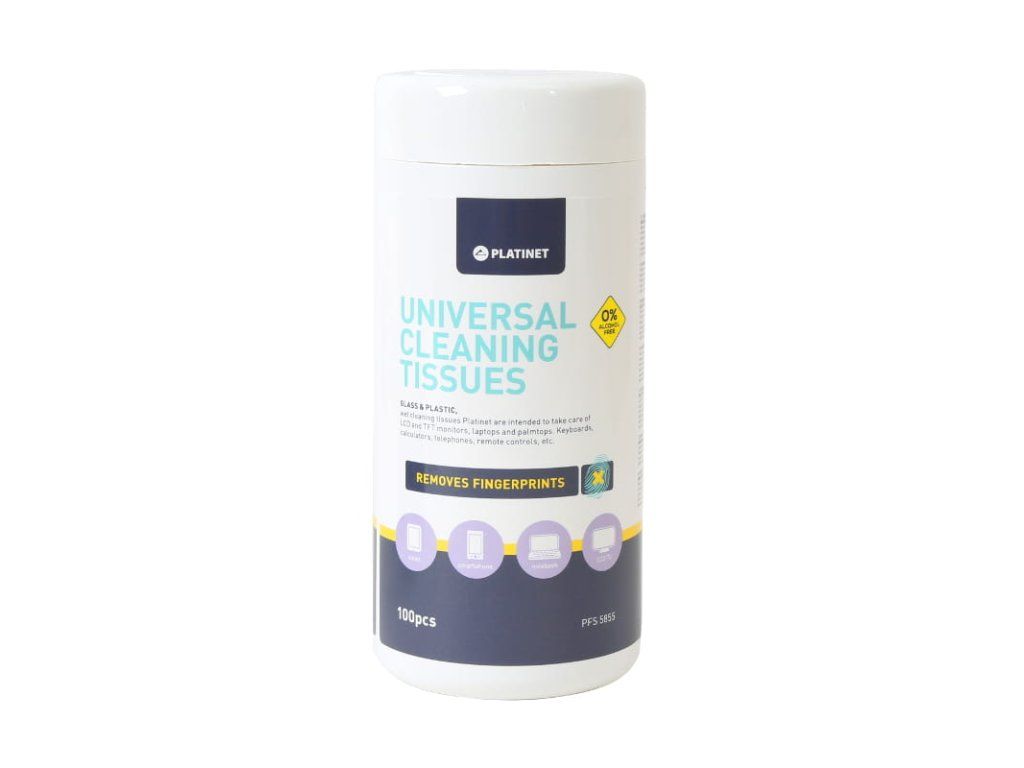 Univerzální vlhčené čistící ubrousky jsou určeny pro péči o LED a LCD displeje, TFT monitory, notebooky, klávesnice a další skleněné a plastové prvky elektronických zařízení. Antistatický a antibakteriální účinek. Neobsahuje žádný alkohol. Nehořlavé. Trvanlivost: neotevřené vydrží ve stejné kvalitě cca 30 měsíců. Obsah 100ks ubrousků.