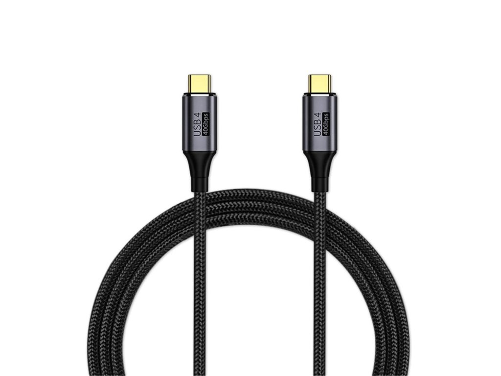 PremiumCord USB4 Gen 3x2 40Gbps 8K@60Hz 240W Thunderbolt 3 kabel 0,8m Tento kabel USB4 nabízí extrémně vysokou přenosovou rychlost až 40 Gbit/s, takže je ideální pro datově náročné aplikace. Přeneste videa ve vysokém rozlišení na monitory a televizory a vychutnejte si ostrý obraz a vynikající zvuk. Umožňuje napájet nebo nabíjet až do výkonu 240W *První konektor: USB typ C samec *Druhý konektor: USB typ C samec *Přenosová rychlost: 40 Gbit/s, až 80x rychlejší než standardní USB2.0 *Zpětně kompatibilní s USB3.2, USB3.0, USB2.0 a Thunderbolt 3 *Napájení 48V / 5A ( Napájení PD3.0, výkon napájení až 240W ) *Rozlišení videa 8K@60Hz, až 40Gbps (podporuje DisplayPort Alt Mode 2.0) *Zalévané konektory, které se dají zasouvat oboustranně,v libovolné orientaci. *Chipset: VL153 - E-Marker pro USB-C kabely *Měděný vnitřní vodič *Trojité stínění *Kabel potažen jemným bavlněným potahem *Barva kabelu: černá *Hliníkové konektory barvy: Silver Grey *Balení PVC sáček s etiketou a EAN kódem *Délka: 0,8m