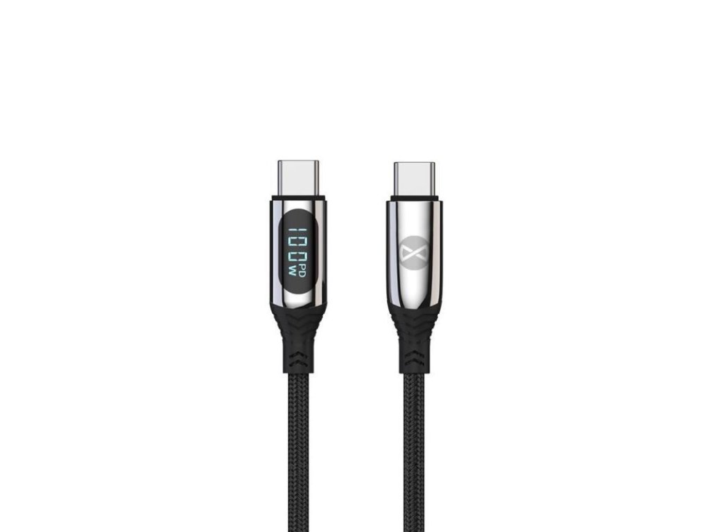 Datový kabel s LCD Forever USB-C/USB-C 1m 100W černý