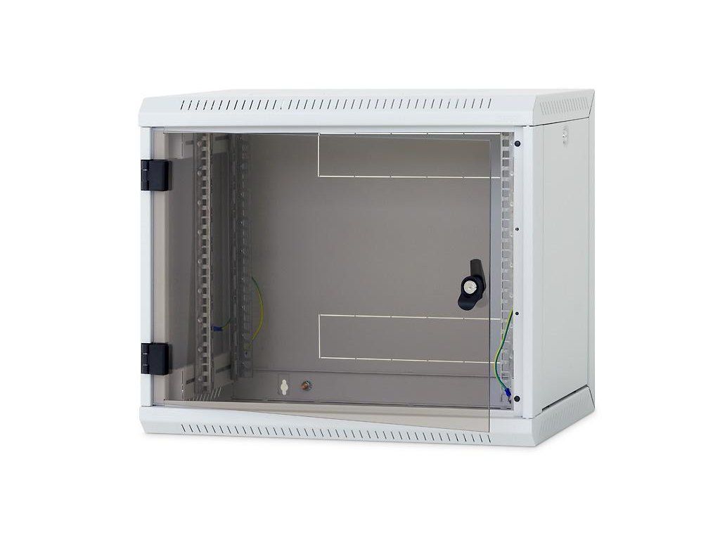 Nástěnný rozvaděč RUA Jednodílný svařovaný rozvaděč s odnímatelnými bočnicemi, IP30, s nosností 30 kg. *Odnímatelné bočnice uzamčené zámky *Rozvaděč se věší přímo na zeď. *Součástí rozvaděče jsou čtyři posuvné vertikální lišty. *Svařovaný skelet s odnímatelnými bočnicemi zajištěnými zámky *Dovolené zatížení jednotlivých dveří je max. 10 kg. *Minimální tloušťka povrchové úpravy je 65 µm. *Rozvaděče jsou určeny k instalaci datových a telekomunikačních zařízení a jejích distribučních systémů. *Rám rozvaděče a všechny oddělitelné části (boční a zadní kryty, dveře…) jsou pospojeny pomocí propojovacích kabelů, které musí být důkladně připevněny a zasunuty do konektorů po celou dobu užívání rozvaděče.. *Na spodní části rozvaděče je umístěn šroub M8 pro připojení pospojení. *Kabelové vstupy kryté vylamovacími záslepkami jsou umístěny v horní a ve spodní části zadní stěny rozvaděče, další jsou na horní a spodní stěně rozvaděče. *Ve spodní a horní stěně rozvaděče jsou otvory pro montáž ventilátorů kryté vylamovacími záslepkami.
