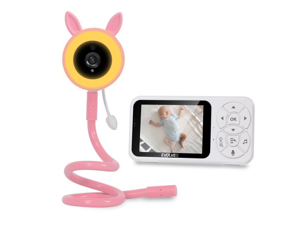 EVOLVEO Baby Monitor N35 – dětská chůvička s kamerou, VOX, teploměr, noční vidění, RGB světlo, Růžová