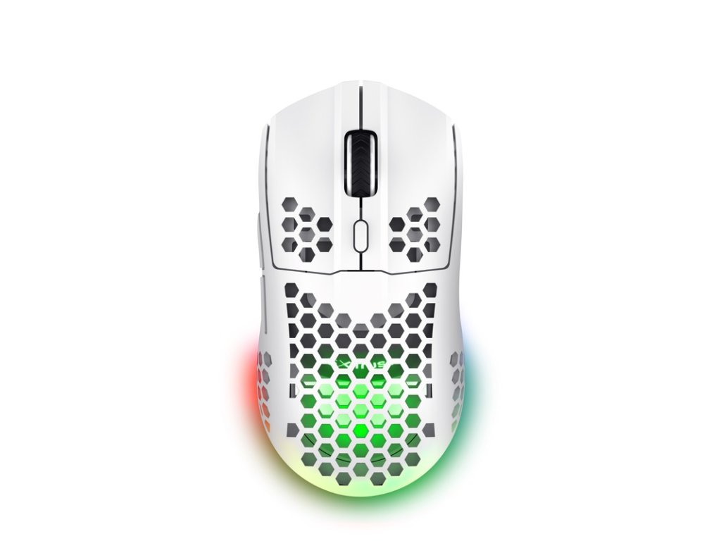 Trust Gaming GXT 929W Helox ultra lehká bezdrátová herní myš s vícebarevným LED podsvícením * voštinové pouzdro dodá vaší sestavě jedinečnost a styl * nízká latence bezdrátového připojení přes 2,4GHz micro-USB přijímač pro hraní bez zpoždění * vestavěná dobíjecí baterie s výdrží až 80 hodin nepřetržitého provozu, se kterou zábava nikdy neskončí * vícebarevné LED podsvícení se 3 barevnými režimy rozzáří vaši herní sestavu * díky přiloženému kabelu můžete hrát dál i během nabíjení