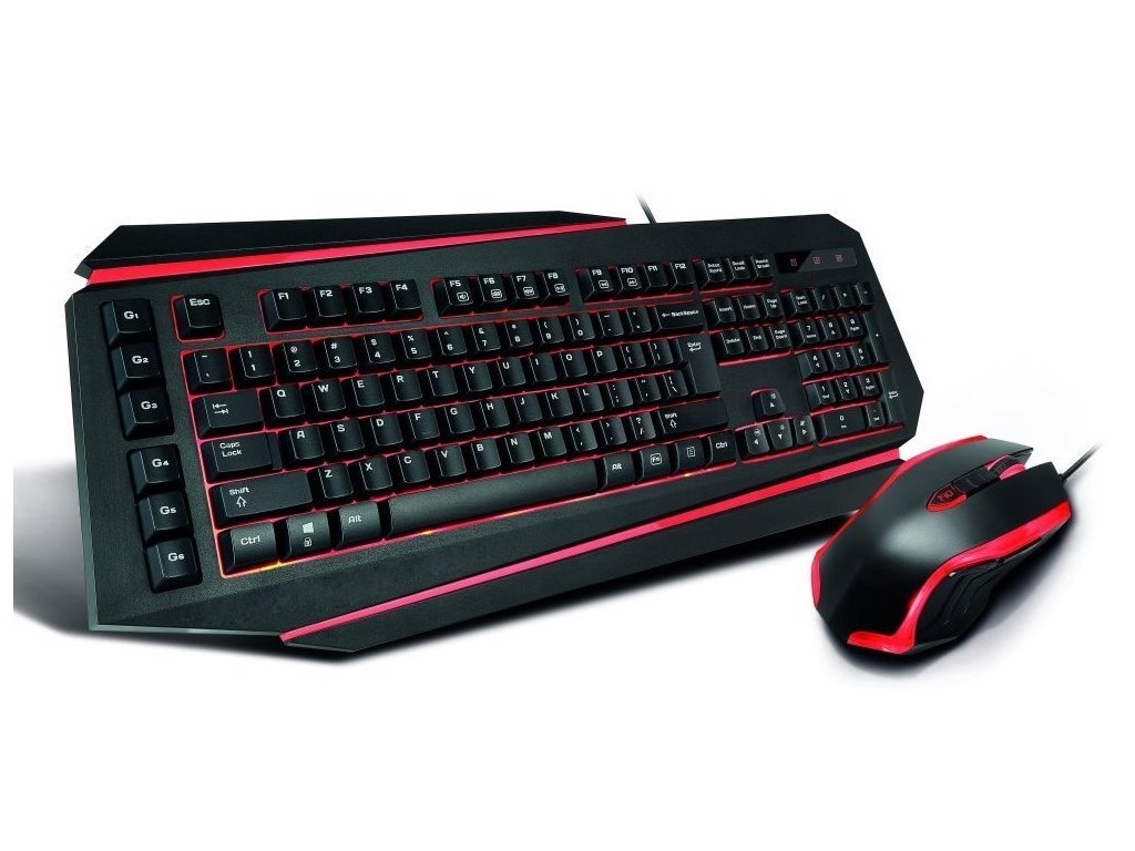 Crono CM637 Set pro hráče obsahující podsvícenou herní klávesnici s programovatelnými klávesami, šesti klávesami s funkcí makro a možností deaktivace klávesy Windows. Dále je součástí ergonomicky tvarovaná laserová myš s červeným pulzujícím podsvícením, která je přizpůsobitelná hráči díky šesti funkčním tlačítkům.