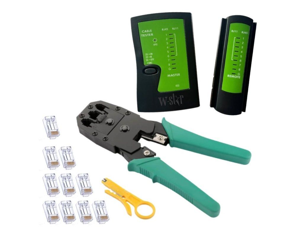 W-Star Sada nářadí pro síťaře WS193, tester UTP, kleště RJ45 RJ11, narážeč, 10x RJ45