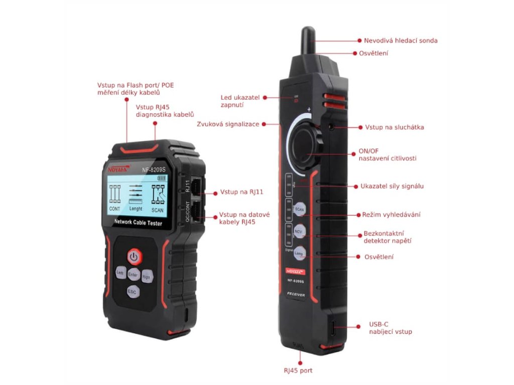 W-Star Tester kabelů UTP WSNF8209S, RJ45, Poe, hledací sonda, flash port