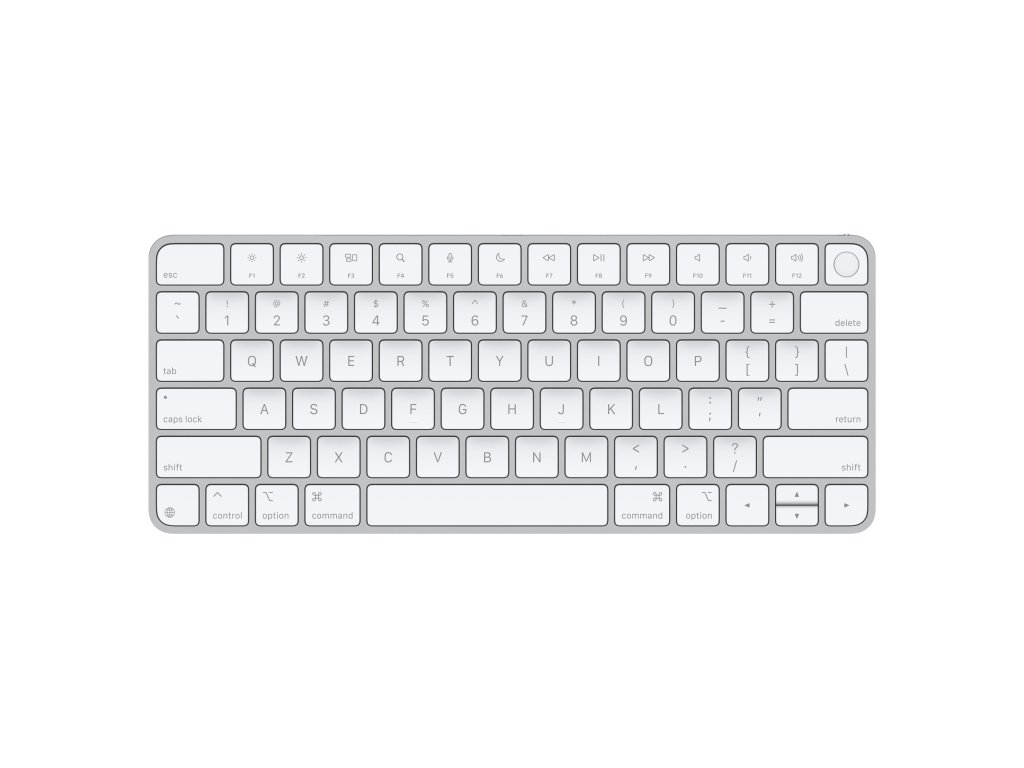 Magic Keyboard s Touch ID pro Macy s čipem Apple – anglický (USA) Magic Keyboard je teď k dispozici s Touch ID na rychlé, snadné a bezpečné ověřování uživatele při přihlašování a nakupování. Na Magic Keyboardu s Touch ID se píše mimořádně pohodlně a přesně. Klávesnice je bezdrátová a dobíjecí. Její zabudovaná baterie má ohromnou výdrž – na jedno nabití udrží klávesnici v chodu i déle než měsíc. S Macem se spáruje automaticky, takže se můžeš rovnou dát do práce. Má port USB-C a je k němu přibalený opletený USB-C nabíjecí kabel na spárování a nabíjení z USB-C portu Macu.