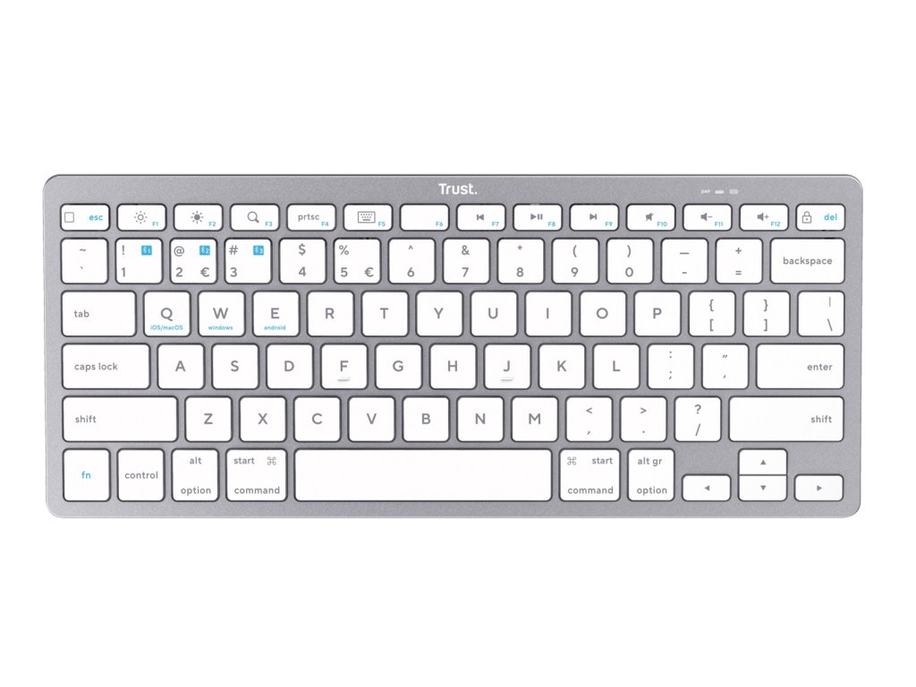 Trust Bluetooth klávesnice ultratenká bezdrátová klávesnice pro váš počítač, notebook, tablet a smartphone * tenké a lehké provedení * trojité párování: připojte se až ke 3 zařízením a jednoduše mezi nimi přepínejte * nízkoprofilové izolované klávesy se skvělou odezvou * Bluetooth 4.0, bezdrátový dosah až 10 metrů * až 12 multimediálních funkčních tlačítek přímo přístupných díky tlačítkům pro výběr OS