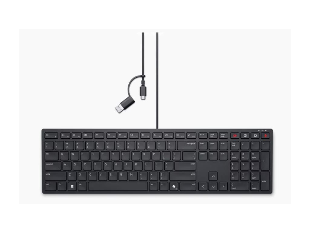 Kabelová klávesnice navržená pro produktivitu a pohodlí s vestavěnou klávesnicí pro usnadnění vaší práce.