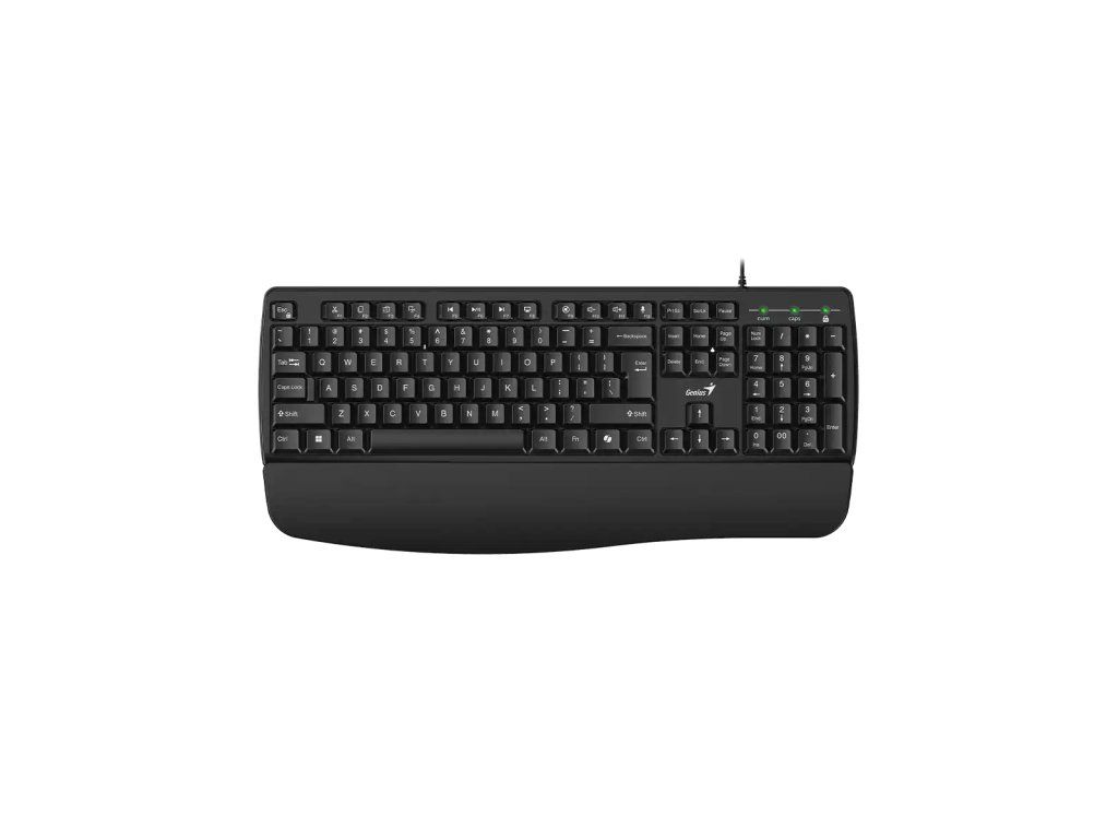 GENIUS KB-123 *Drátová plnohodnotná klávesnice Copilot *Opěrka zápěstí poskytuje pohodlí předloktím a prstům *Tlačítko Copilot pro aktivaci AI Copilot (pro Windows 11 nebo vyšší) *Oblast často používaných klávesových zkratek *Přídavné číslo 00 *Odolný proti polití *USB plug and play