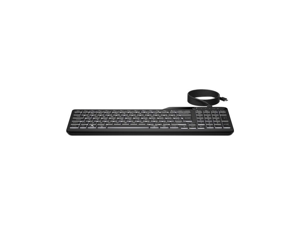 HP 400 - podsvícená kabelová klávesnice * bílé 3stupňové podsvícení kláves * provoz 24/7 * automatická detekce operačního systému * nízkoprofilový zdvih kláves * 50% podíl recyklovaných plastů