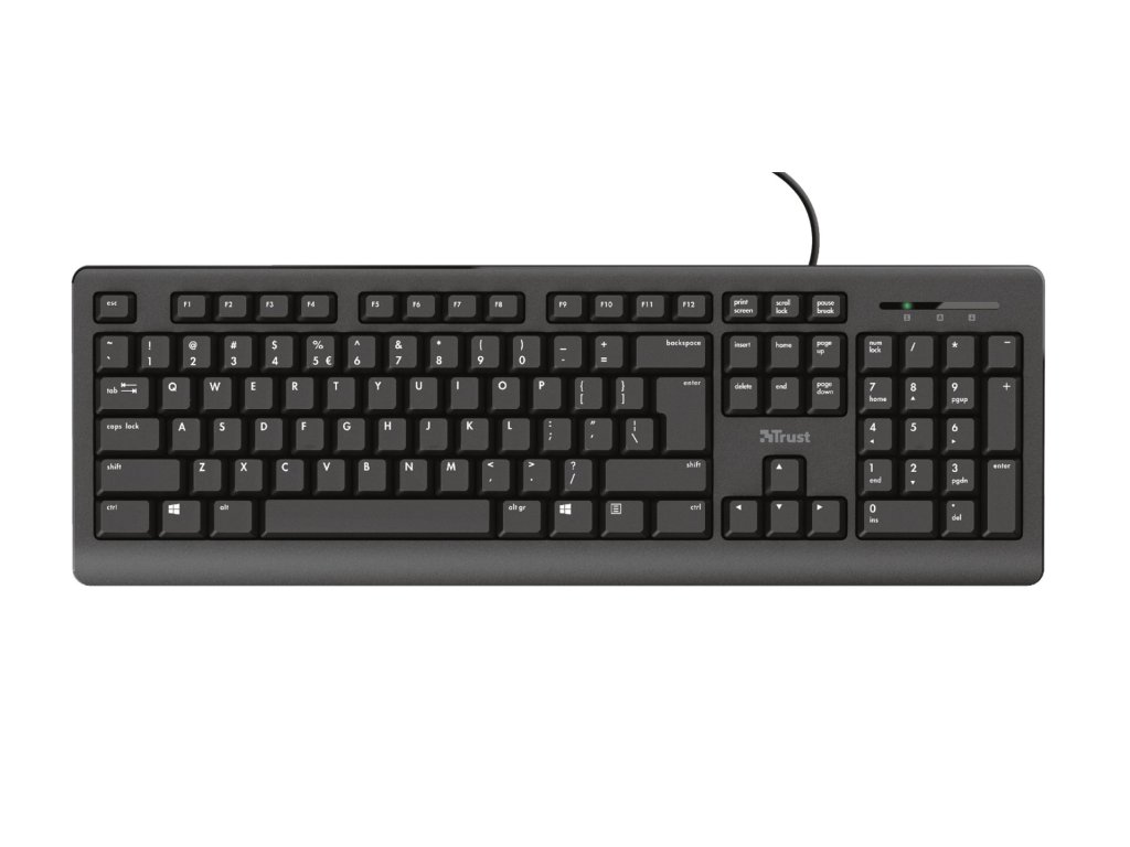 Trust Primo Keyboard klávesnice plné velikosti s tichými klávesami a designem odolným proti polití. Klávesnice přicházejí ve všech tvarech a velikostech, ale co když potřebujete pouze základní funkce? Trust Primo to přesně dělá. Má rozložení v plné velikosti, klávesy odolné proti polití a je výškově nastavitelné. A díky tichým klávesám budete psát celé hodiny, aniž byste obtěžovali své spolupracovníky.