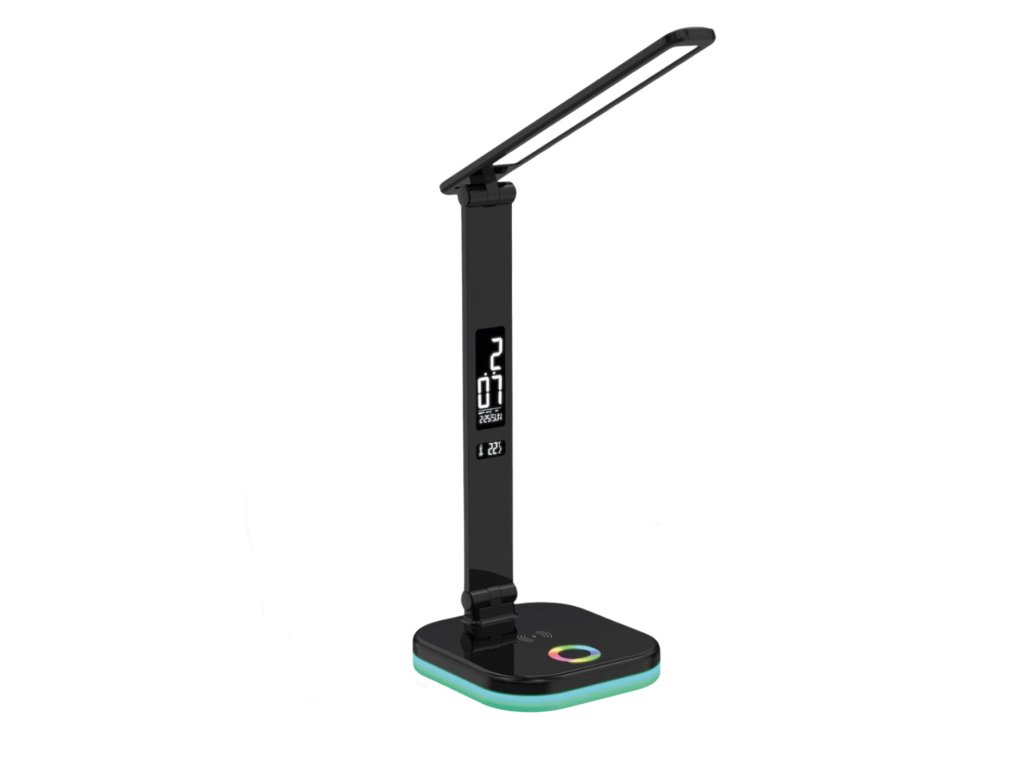 Lampa je vybavena multifunkčním displejem, který zobrazuje čas, datum i teplotu v místnosti. Nechybí ani vestavěný budík. Velkou výhodou je také integrovaná 5W bezdrátová nabíječka, díky které budete mít svůj chytrý telefon neustále nabitý a na dosah ruky – bez zbytečných kabelů. Praktická je i funkce automatického vypnutí pomocí 45minutového časovače.