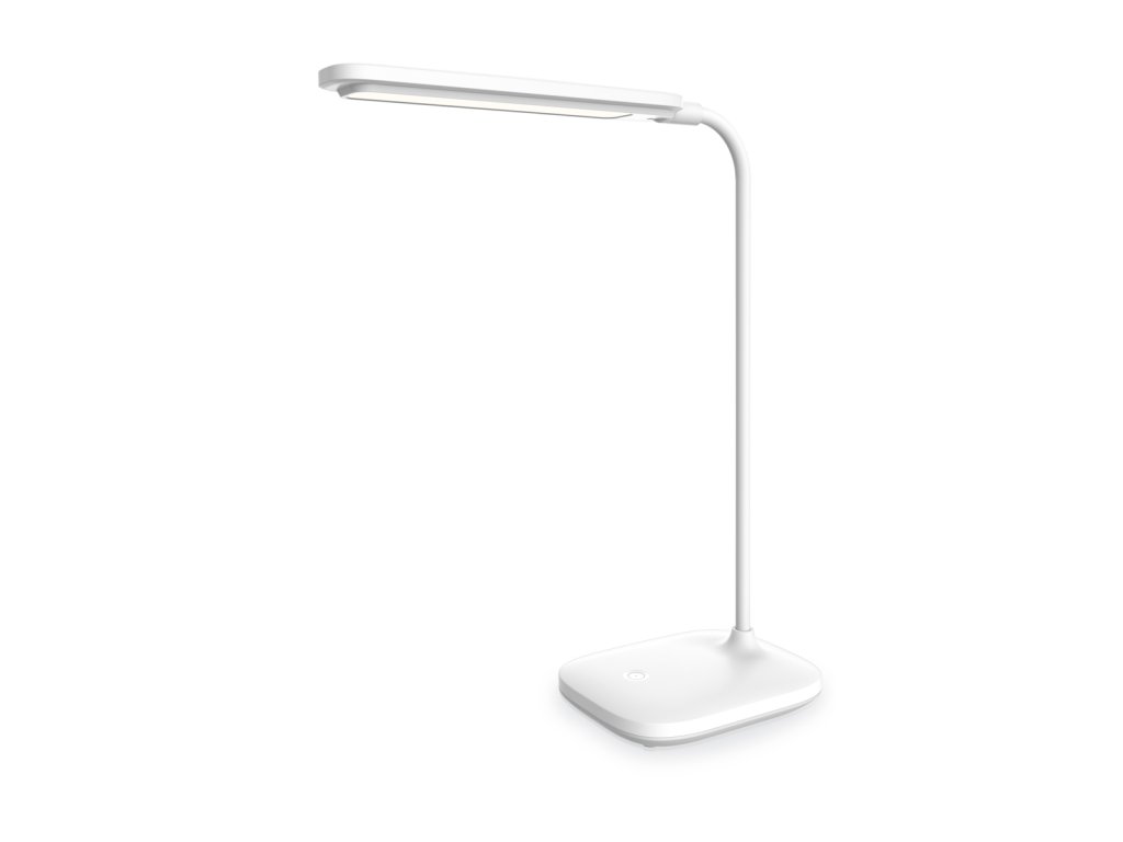 Dotykové ovládání na základně umožňuje snadné nastavení intenzity světla podle potřeby. Flexibilní rameno navíc usnadňuje přizpůsobení směru svícení tak, jak právě potřebujete. Tělo lampy je vyrobeno z plastu v bílém provedení, s kvalitním podáním barev (CRI > 80 Ra) a ochranou IP20 pro vnitřní použití.