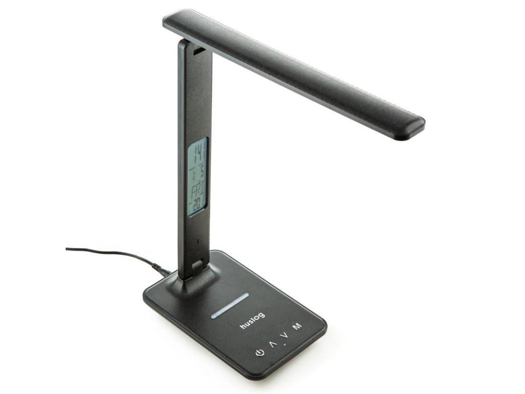 Stolní LED lampička Huslog černá s displejem a bezdrátovou nabíječkou