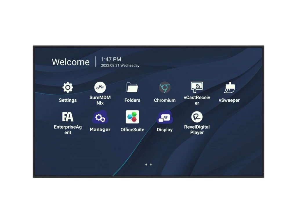 55" 4K Presentation Display *Elegantní design s všestrannou konektivitou *24/7 *Vzdálená správa zařízení pomocí myViewBoard Manager *Kompatibilita ProAV s Crestron, Extron a AMX *Procesor: Čtyřjádrový ARM Cortex A55 *Android 11