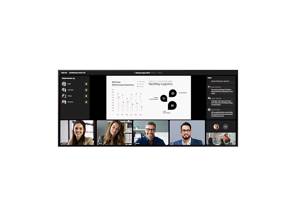 105" LED Samsung QP105DX5K UHD Signage displej Posuňte své pracovní schůzky na vyšší úroveň se 105palcovým displejem. Bohatá ultraširokoúhlá obrazovka efektivně nahrazuje hned několik displejů a nabízí plynulý pohled bez rušivých přechodů. S hloubkou pouhých 48,1 mm je tento 105palcový displej nejtenčí ve své třídě. Porty směřující ven umožňují snadnou montáž na stěnu, takže je ideální pro zasedací místnosti, které vyžadují eleganci i efektivitu. Tento monitor s poměrem stran 21:9 je navržený tak, aby zapadl do moderních pracovních prostředí a proměnil je ve špičková konferenční místa. Ať už jsou účastníci přítomni osobně nebo vzdáleně, monitor zajišťuje jejich odpovídající zapojení do děje a poskytuje skutečně pohlcující prostředí, rozvíjející vzájemnou spolupráci. Jednotné, rovnoměrné rámečky po všech čtyřech stranách displeje zachovávají vizuální kvalitu a přesnost mezi režimy na výšku a šířku. Netrapte se už zdlouhavým připojováním kabelů – využijte bezdrátové sdílení obrazovky, přinášející ještě pohodlnější spolupráci. QPDX-5K umožňuje sdílení až 10 obrazovek naráz, přičemž mezi nimi lze přepínat jediným kliknutím. * inovativní řešení SmartView+ (bezdrátové sdílení obrazovek -současné zobrazení až 10 obrazovek, přepínání mezi nimi jediným kliknutím) * inteligentní mobilní aplikace Samsung Smart Calibration * technologie SmartThings Pro (vzdálené monitorování a řízení nevyužívaných zařízení a klimatizace) * cloudová aplikace Samsung VXT (spojuje možnosti vzdálené správy obsahu i řízení zařízení)-nutno zakoupit samostatně * přizpůsobeno funkci Microsoft Teams Front Row (tato f-ce AI umožňuje konfigurovat obrazovku v ultraširokém formátu (21:9) Teams během schůzek)