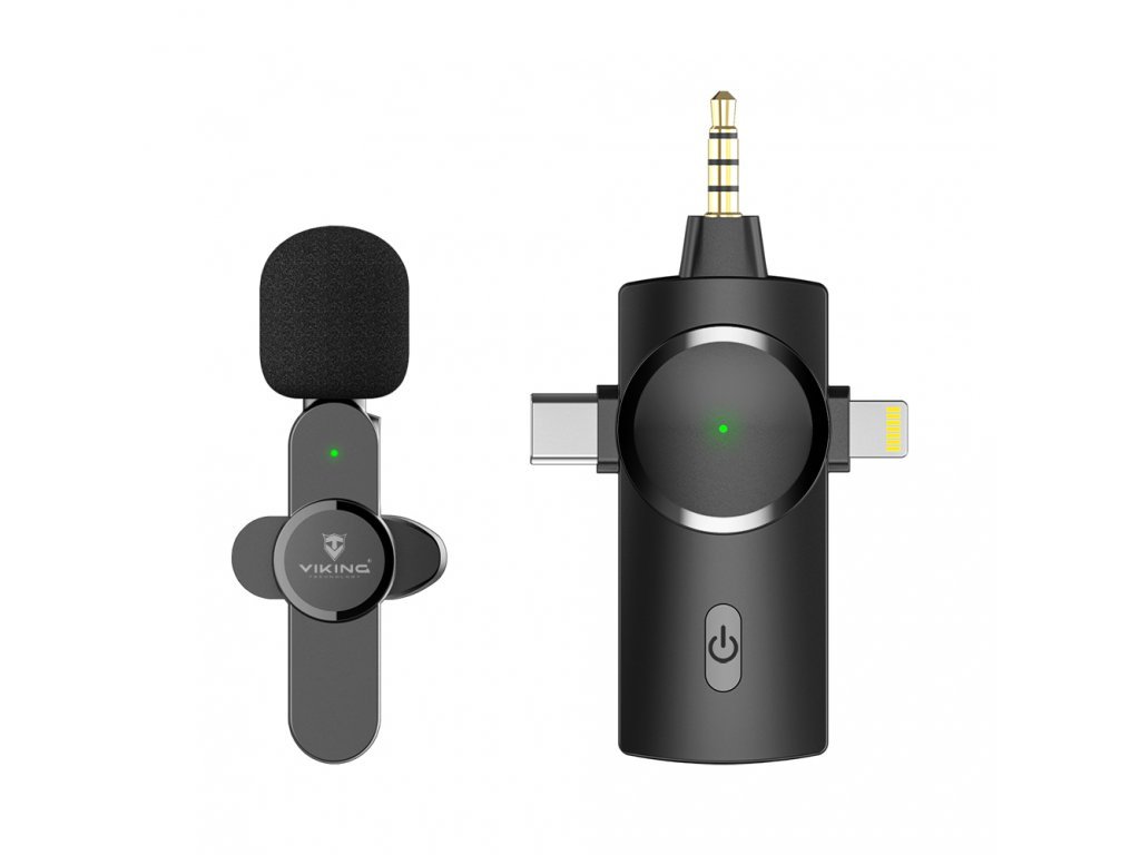 Bezdrátový "Clip-on" mikrofon VIKING M360/3in1 Malý, výkonný bezdrátový mikrofon VIKING M360/3in1 je vhodný pro pořízen audio/video záznamu ve vysoké kvalitě. Dlouhá výdrž baterie, vysoká citlivost mikrofonu a žádné zbytečné kabely, to jsou hlavní přednosti, které vám umožní snadné a pohodlné pořízení zvukového záznamu. Velkou výhodou mikrofonu VIKING M360/3in1 je baterie s výdrží až 7 hodin, která Vám zajistí dostatečný čas na pořízení kvalitního audio/video záznamu. Díky podpoře operačního sytému Android a iOS, Vám bude tento mikrofon VIKING M360/3in1 spolehlivě sloužit. Další výhodou je funkce Plug and Play, velice snadné propojení, které zvládne úplně každý. K propojení mikrofonu VIKING M360/3in1 nepotřebujete instalovat žádnou další aplikaci. Stačí pouze připojit přijímací modem mikrofonu, který se spáruje s mikrofonem a můžete začít nahrávat. Dosah min. 100 metrů na otevřeném prostoru a až 20m v uzavřeném prostoru, Vám umožní volný pohyb s mikrofonem bez jakéhokoliv omezení při Vašem nahrávání.