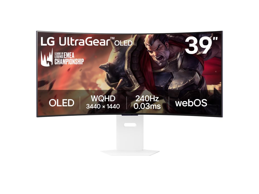 39" zakřivený chytrý herní monitor LG UltraGear™ OLED 240Hz WQHD | webOS, 0.03ms (GtG), 240Hz, DisplayHDR True Black 400 * 39" OLED displej s rozlišením WQHD (3440 x 1440) *Obnovovací frekvence 240Hz / doba odezvy 0.03ms (GtG) *webOS *AI Picture / Dynamické mapování tónů / AI Personalized Picture Wizard / AI Sound *NVIDIA® G-SYNC® Compatible / AMD FreeSync™ Premium / VESA Certified AdaptiveSync *Šestihranný design osvětlení s prostorově úsporným L stojanem