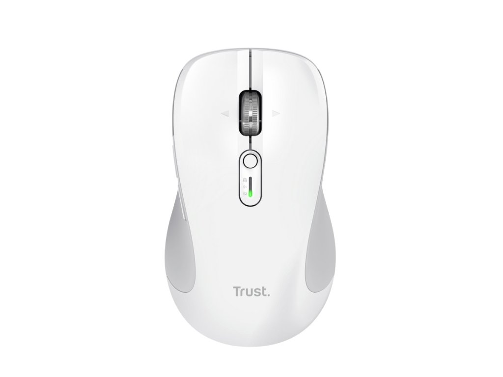 Trust FERRO Hyperwheel bezdrátová myš myš s možností připojení více zařízení a hyperscrollovacím kolečkem pro super rychlé rolování * tato bezdrátová myš se připojuje až ke 3 zařízením prostřednictvím 2 Bluetooth portů a 2,4G USB-A přijímače - přepínejte mezi notebookem, tabletem nebo stolním počítačem jediným stisknutím tlačítka * díky nastavitelnému rozlišení v rozmezí 1000–3200 si můžete užívat plynulé a přesné ovládání při práci, prohlížení, úpravách a dalších činnostech * tato myš vám pomůže pracovat se sníženým dopadem na životní prostředí, aniž byste museli slevovat z výkonu, designu nebo pohodlí (vyrobeno z 85 % recyklovaných plastů)