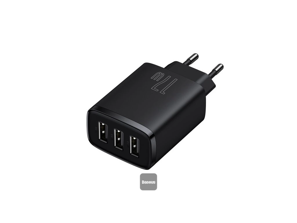 › TELEFONY, HODINKY A NAVIGACE › Napájecí adaptéry › Baseus nabíječka do sítě Compact 3xUSB 17W černá