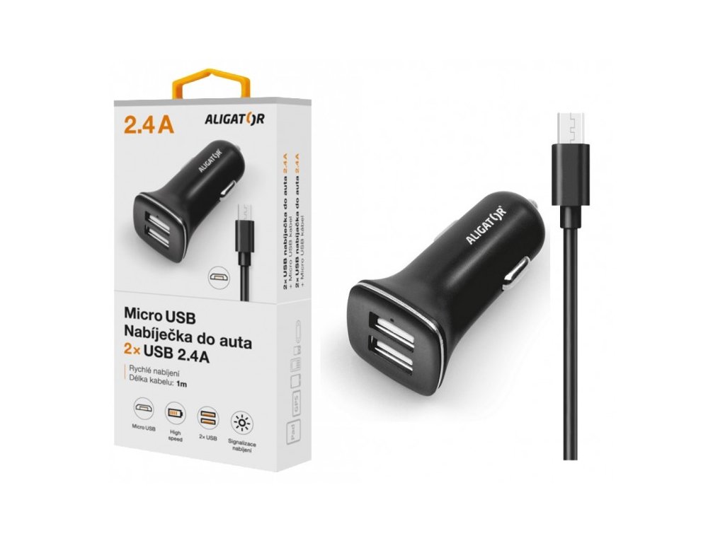 ALIGATOR Nabí. do auta microUSB 2,4A TCH černá
