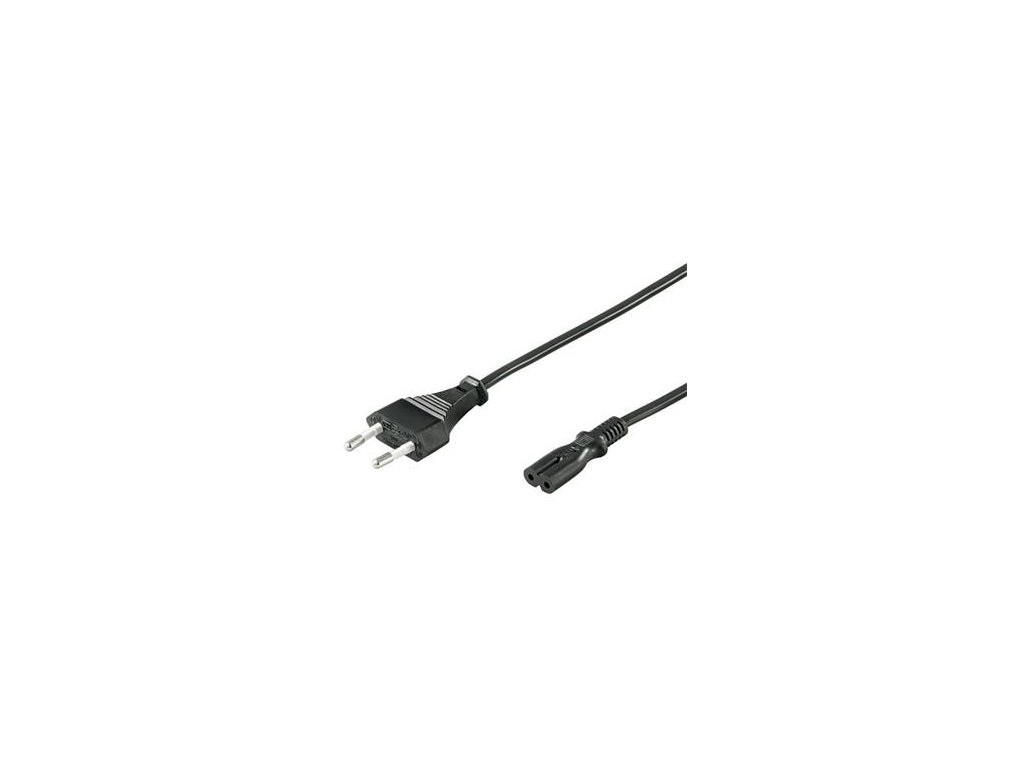 Napájecí kabel v černém provedení pro napájecí adaptér. Dvoužilový kabel je zakončený koncem v podobě ležaté osmičky. * Napětí max.: 250V * Proudové zatížení: max 2,5A * Vodič kabelu: H03VVH2F 2x0.75mm2 měď * Barevné provedení:Černé * Počet kusů v kartonu: 50 ks * Délka kabelu: 5m