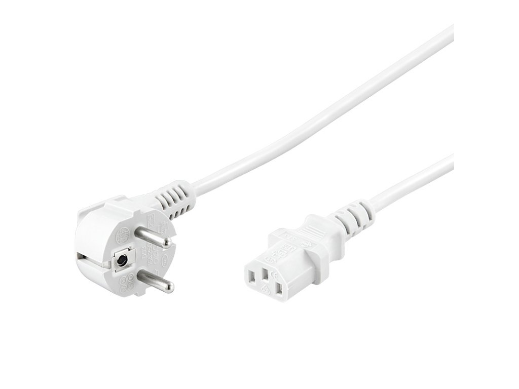 Parametry a specifikace: *První konektor: CEE 7/7 zahnutá vidlice 230V UNISCHUKO *Druhý konektor: IEC 320 C13 zásuvka *Typ kabelu: H05VV-F 3x0,75mm2 *Průřez vodiče H05-VV-F3G: 3x0,75mm2 *Proudové zatížení: max 10A *Napětí max.: 250V *Barevné provedení: bílý *Počet kusů v kartonu: 50 ks *Délka kabelu: 1m