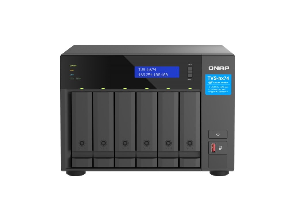 QNAP TVS-h674-i3-16G (4core 4,3GHz, ZFS, 16GB RAM, 6x SATA, 2x M.2 NVMe, 2x PCIe, 2x 2,5GbE, HDMI)