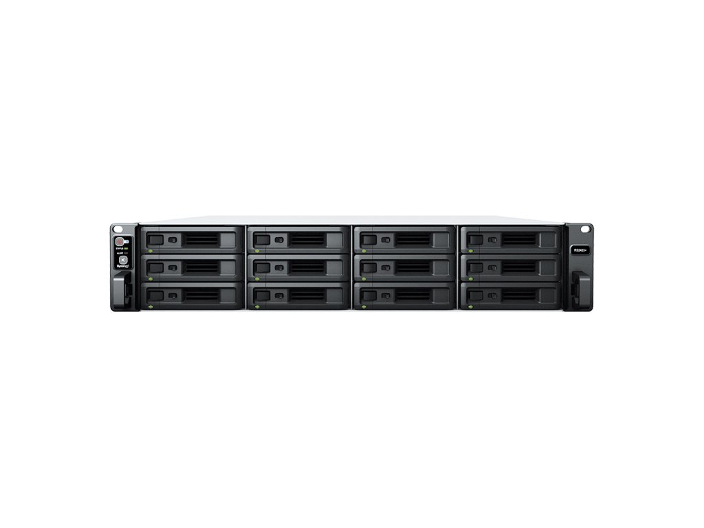 TECHNICKÉ PARAMETRY * CPU: AMD Ryzen V1780B * Systém hardwarového šifrování (AES-NI): Ano * Paměť: 8GB DDR4 ECC UDIMM * Maximální kapacita paměti: 32GB (2x 16GB) * Šachta pevného disku: 12x * Kompatibilní typy disků: 3,5" SATA HDD, 2,5" SATA SSD * Disky vyměnitelné za provozu: Ano * Externí porty: • RJ-45 1GbE LAN Port: 2 (s podporou funkcí Link Aggregation/Failover) • RJ-45 10GbE LAN port: 1 • USB 3.2 Gen 1: 2 • rozšiřovací port: 1 * Rozšíření PCIe: 1x Gen3 x8 slot (x4 link) * Probuzení přes LAN/WAN: Ano * Plánované zapnutí/vypnutí: Ano * Systémové ventilátory 3x (60x60mm) * Vstupní střídavé napětí: 100V až 240V AC * Frekvence napájení 50/60Hz, jednofázové * Spotřeba energie: 119,95W (za chodu) 46,21W (hibernace pevného disku) * Souborové systémy: interní: Btrfs, ext4; externí: Btrfs, ext4, ext3, FAT32, NTFS, HFS+, exFAT * Správa úložiště: • Podporované typy RAID: Synology Hybrid RAID (SHR), Basic, JBOD, RAID 0, RAID 1, RAID 5, RAID 6, RAID 10 • Maximální velikost jednoho svazku: 108TB • Maximální počet interních svazků: 64 * Možnosti sdílení souborů: • Maximální počet místních uživatelských účtů: 2048 • Maximální počet místních skupin: 256 • Maximální počet sdílených složek: 512 • Maximální počet synchronizovaných operací se sdílenými složkami: 32 * Maximální počet snímků na sdílenou složku: 1024 * Maximální počet uživatelů: 1800 * Hladina hluku: 52,3dB(A) * Rozměry (vxšxh): 88x482x552mm * Hmotnost: 11,5kg