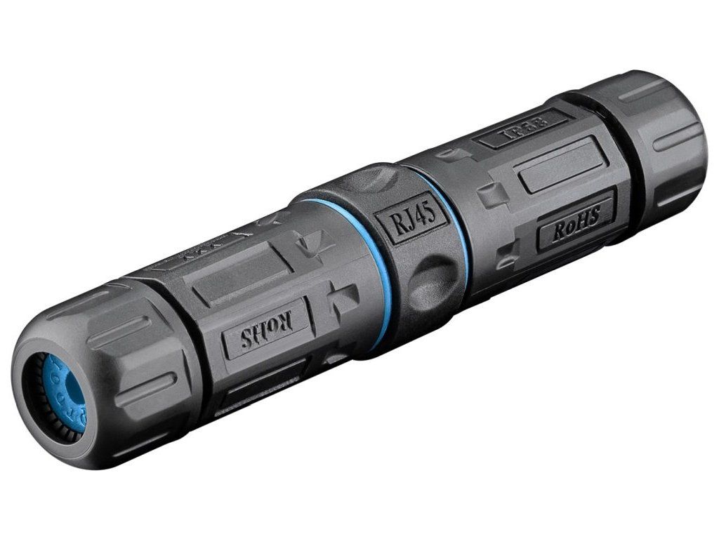 PremiumCord Vodotěsný propojovací box 2x RJ45 female (8P8C) pro kabely Cat.6A, stíněný Tato spojka kabelů je určena pro spojení dvou patch kabelů až Cat6A (nebo Cat5/6) a odstraňuje potřebu objemných spojovacích krabic. Je to neuvěřitelně snadné řešení - nepotřebuje žádné speciální nástroje, vyžaduje minimální prostor kolem sebe. Plně vodotěsné pouzdro (IP68) zajistí vodotěsnost ve venkovním prostředí *Připojení dvou patch kabelů až Cat6A (nebo Cat5/6) *Neuvěřitelně snadné sestavení - žádné speciální nástroje není třeba *Jednoduše rozšroubovat , provléknout patch kabely, zasunout do vnitřní spojky RJ45 a zpět pouzdro vodotěsně sešroubovat *Vnitřní spojka RJ45 - RJ45 Femela/Female *Stíněná STP *Specifikace CAT 6A *Přenos signálu max. šířka pásma 500 MHz *Pro kabely tloušťky 4-8mm *Krytí IP68 proti vodě a prachu *Teplota:-40°C - 105°C *Vhodné pro PoE+ dle normy IEEE 802.3at
