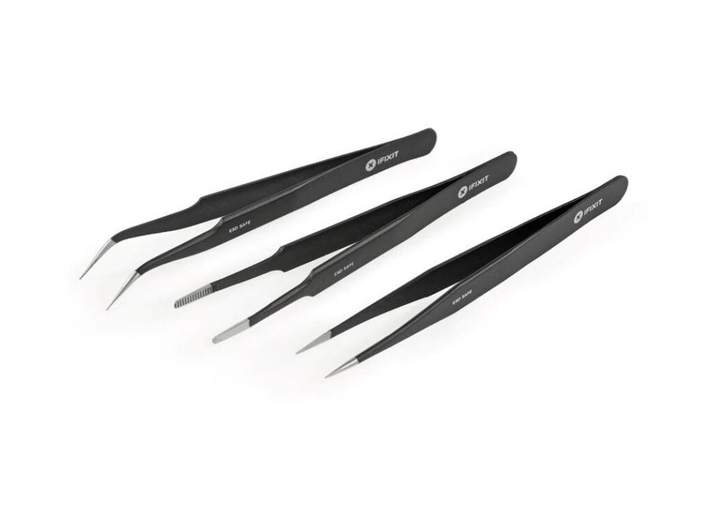 Sada iFixit Precision Tweezers Set Pro obsahuje tři pinzety pro nejrůznější pracovní činnosti, jako je například nadzvedávání, přidržování jemných součástek, vytahování či trhání. Pinzeta se špičatými hroty je ideální pro přesnou a jemnou práci, šikmé hroty se potom dostanou i do špatně přístupných míst a plochou pinzetu využijete pro pevné uchopení součástek bez rizika jejich poškození. Všechny nástroje mají ochranný potah ESD zabraňující elektrostatickým výbojům, takže je můžete použít i pro práci s citlivou elektronikou.