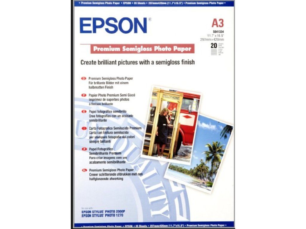 › SPOTŘEBNÍ MATERIÁL › Papíry pro velkoformátový tisk › EPSON A3, Premium Semigloss Photo Paper (20 listů)