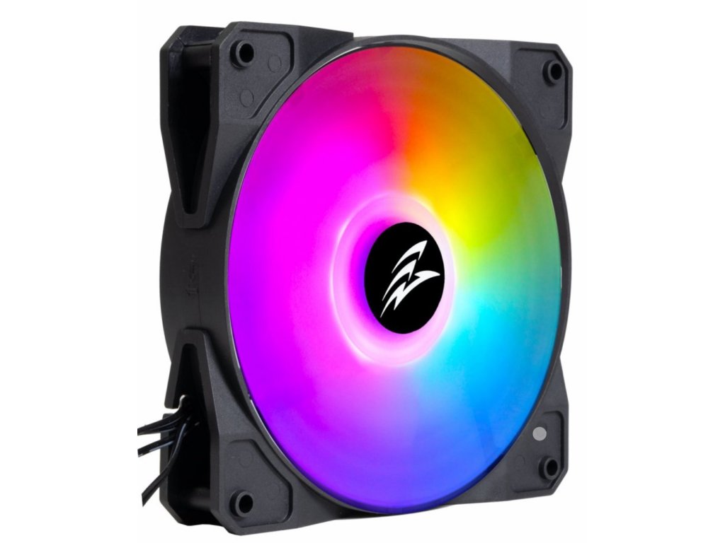 ARGB LED ventilátor typu rainbow s LED diodami. Ventilátor umožňuje najednou zobrazit všech sedm barev duhového spektra.Jedná se o kontrolní ventilátor, který je určen pro použití s ventilátorem EVOLVEO 12FS. LED osvětlení je ovládáno pomocí tlačítka reset nebo LED tlačítka na ovládacím panelu skříně nebo připojením přiloženého ARGB kabelu k základní desce.