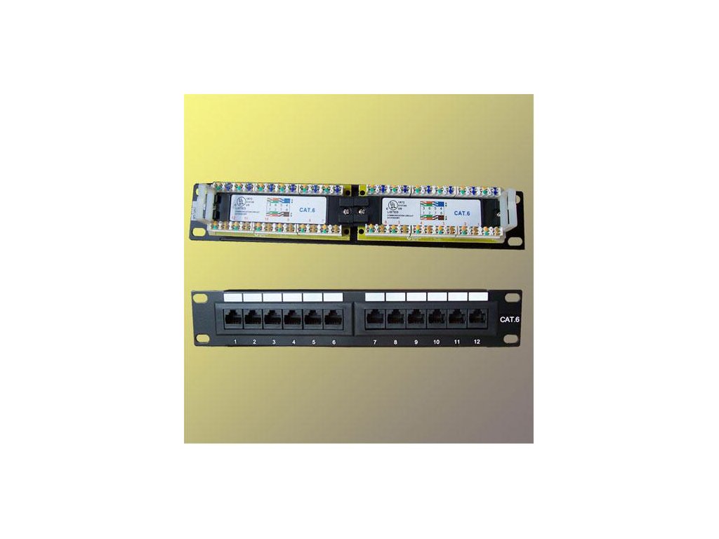 › SÍTĚ,SERVERY › Síťové prvky pasivní › Příslušenství k 10" datovým rozvaděčům › Patch panel 10“ UTP cat6, 12portů