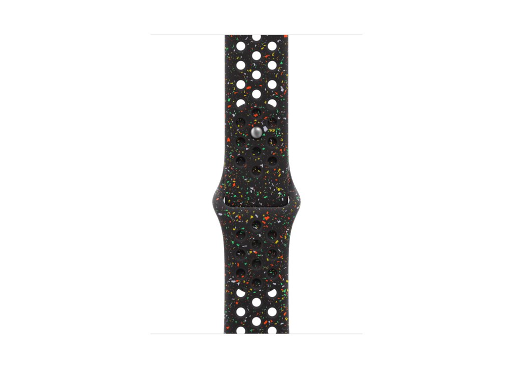 46mm Midnight Black sportovní řemínek Nike Tenhle sportovní řemínek Nike má vylisované otvory pro větší vzdušnost, je odolný, pevný a přitom překvapivě poddajný. Obsahuje barevné vločky, které tvoří náhodné vzory, takže každý řemínek je originál. Jeho hladký, hutný materiál se elegantně ovine kolem zápěstí a příjemně sedí. A zapíná se na hliníkový kolíček s matným povrchem, do kterého je pečlivě vygravírované logo Nike Run. *Materiál: Hliník, Fluoroelastomer