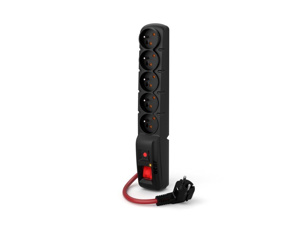 Acar F5 5m kabel, 5 zásuvek, přepěťová ochrana, max.proud 16A, černý