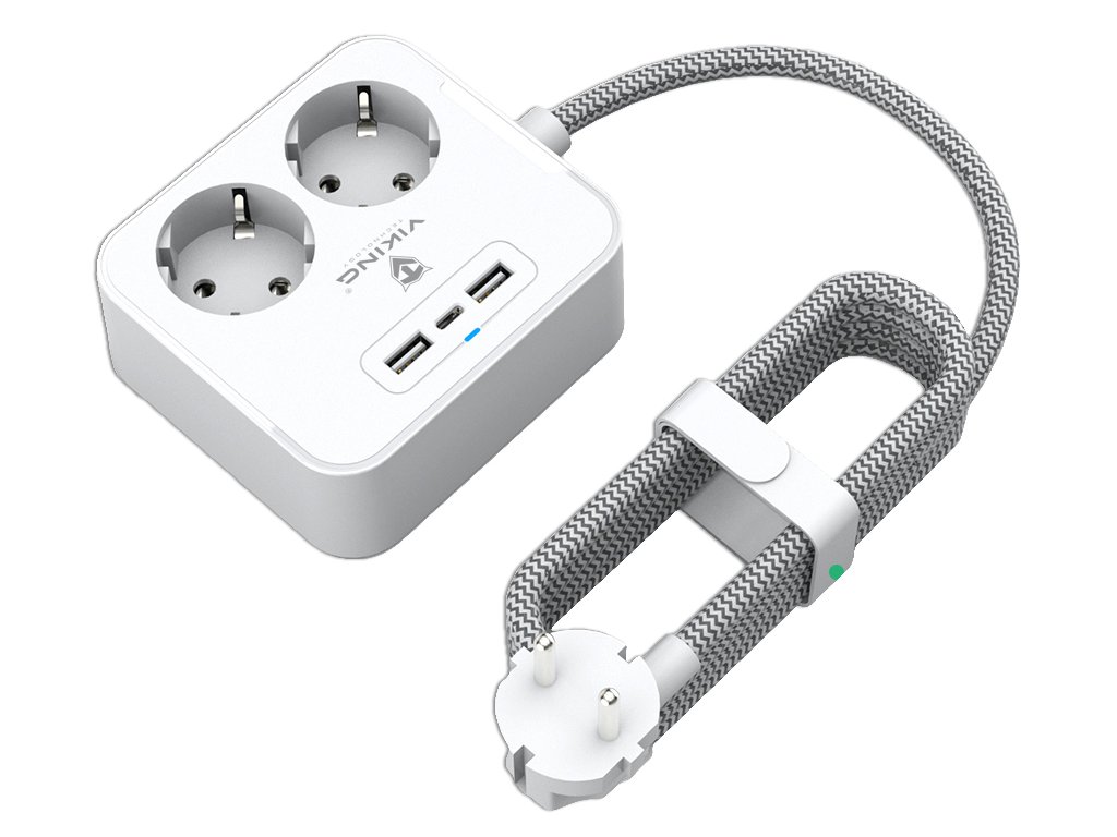 Technické specifikace: Model: VIKING AC23 AC 230V vstup: 230 - 250V, 16A, 50/60Hz, 4000W max. AC 230V výstup (2x): 231 - 250V, 16A, 50/60Hz, 4000W max. DC USB-A výstup (2x): 5V/2.4A DC USB-C výstup (1x): 5V/3A DC USB-A + USB-C výstup: 5V/3.4A Rozměry: 10.8 x 9.8 x 4.1 cm Hmotnost: 410 g Délka kabelu: 150 cm Ochrana: Proti zkratu, přepětí, přehřátí, nadproudu, přebití, jiskření