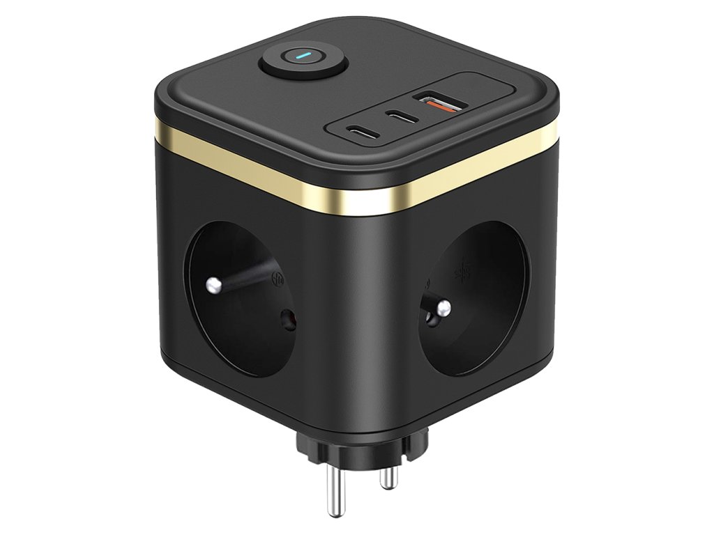 Síťový adaptér • rozbočovač • zásuvka • 3 x AC (230V) výstup • 1 x USB-A (5V 3A, 9V 2A, 12V 1,5A) • 2 x USB-C (5V 3A, 9V 2,22A, 12V 1,67A) • kompaktní rozměry a design • tlačítko ON/OFF • možnost nabíjení až 6 zařízení současně