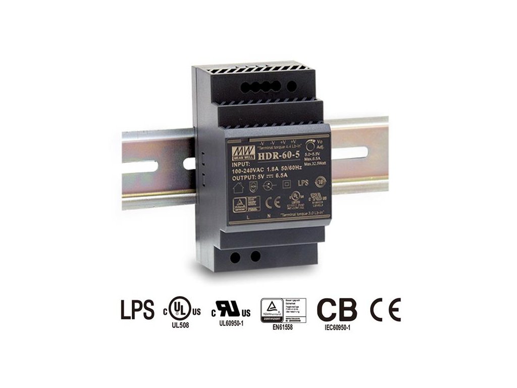 MEANWELL - HDR-60-12 - Průmyslový napájecí spínaný zdroj 12V 60W na DIN