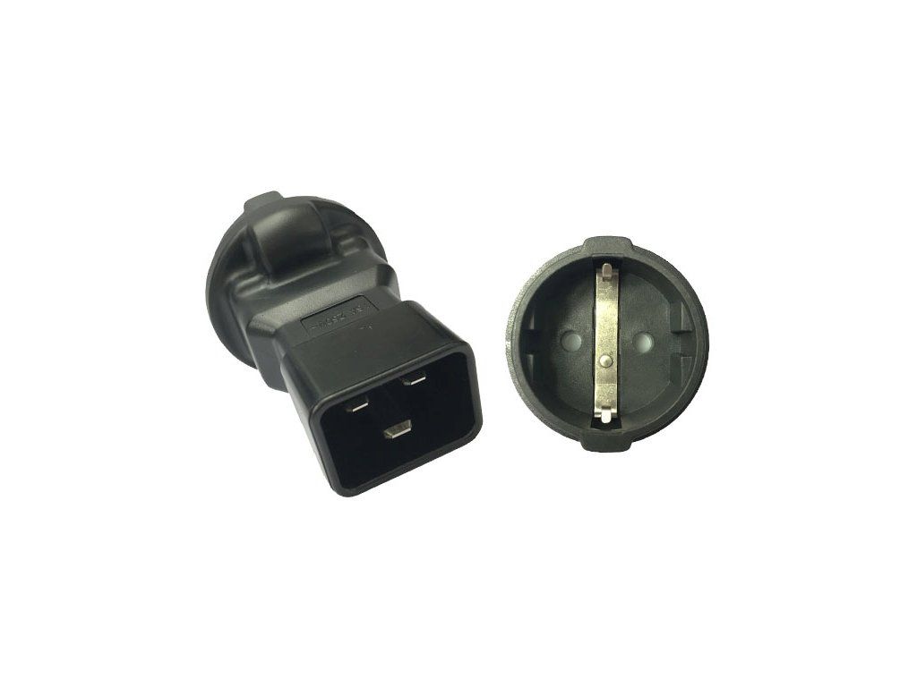 Napájecí adaptér v černém provedení pro UPC, na vstupu konektor IEC C20 male a na výstupu SCHUKO CEE 7/3 female - První konektor: IEC C20 rovná vidlice do UPS - Druhý konektor: SCHUKO CEE 7/3 rovná zásuvka německého typu s ochranými plíšky po stranách. Vhodné pro připojení vidlice, která je vybavena zemnícími plíšky po stranách - Proudové zatížení: max 16A - Napětí max.: 250V - Barevné provedení: černé - Baleno v PVC sáčku s EAN kódem