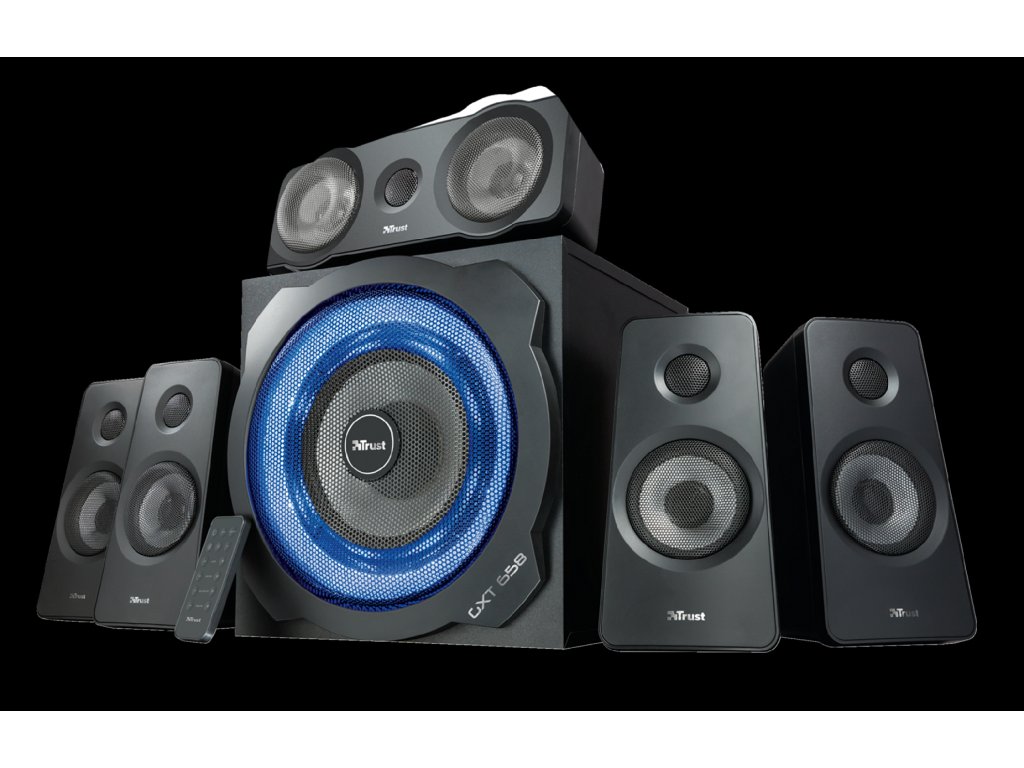 Systémové požadavky * PC nebo notebook s 3,5 mm zvukovým konektorem * Herní konzole Wii, Playstation 3 nebo Xbox 360 (vyžaduje kabel AV dodaný s herní konzolí) * Připojení do elektrické zásuvky *Zvuk 5.1 surround je k dispozici pouze u počítačů kompatibilních se standardem 5.1 (tři konektory 3,5 mm) Více na webu výrobce: www.trust.com/en/product/21738-gxt-658-tytan-5-1-surround-speaker-system