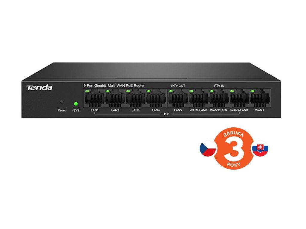 Tenda G0-8G-PoE Gigabit PoE Router MultiWAN, 3x GWAN/GLAN, 1x GWAN, 5x GLAN, 8x PoE 802.3af/at, VPN