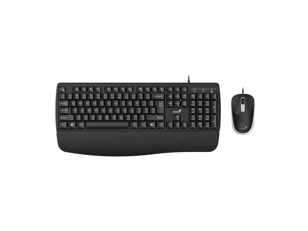 Genius KM-123 Sada klávesnice a myši Copilot Office *Drátová klávesnice Copilot s opěrkou zápěstí *Drátová optická myš s kolečkem, 1200 DPI *Opěrka pro pohodlí předloktí a prstů *Klávesa Copilot pro aktivaci AI Copilot (pro Windows 11 a novější) *Číselná klávesa 00 *USB plug and play