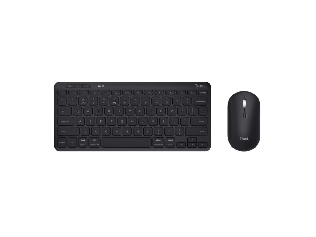 Bezdrátová a nabíjecí kompaktní sada klávesnice a myši s možností připojení více zařízení * Bezdrátové připojení více zařízení - snadné připojení až tří zařízení najednou prostřednictvím jediného přijímače USB 2,4 GHz nebo přes Bluetooth® * Ekologický design, klávesnice je vyrobena z 85 % z recyklovaných materiálů a myš z 84 % *Snadné přepínání připojení stisknutím vyhrazených tlačítek pro každé připojené zařízení na klávesnici nebo myši *Podpora více operačních systémů (Windows, iOS, iPadOS, MacOS, Android, Chrome OS) * Tiché nízkoprofilové notebookové klávesy a tlačítka myši pro tiché pracovní prostředí *Vestavěná dobíjecí baterie – výdrž až 6 měsíců * Zachovejte si vyšší produktivitu, protože klávesnici nebo myš můžete používat i během nabíjení (dobíjení trvá pouhé 2 hodiny) * Ve třech krocích výškově nastavitelné gumové nožičky pro větší pohodlí * 12 multimediálních kláves Fn pro plnohodnotnou, ale kompaktní klávesnici *Obsahuje myš s oboustranným ovládáním – pro leváky i praváky *Přizpůsobitelná rychlost kurzoru (800-1200-1600 DPI) https://www.trust.com/en/product/24843-lyra-wireless-keyboard-mouse-set-black