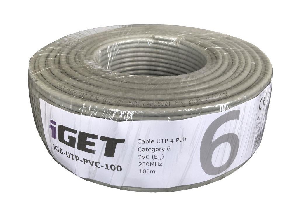 Instalační kabel iGET CAT6 UTP PVC Eca 100m/box, kabel drát, s třídou reakce na oheň Eca
