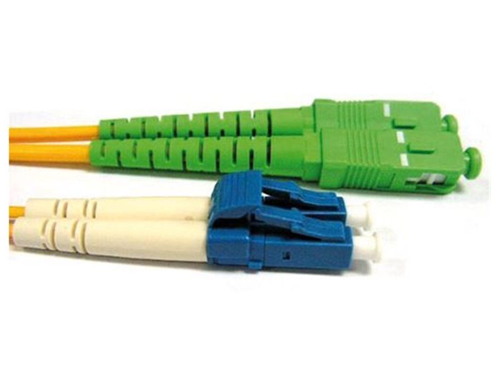› PERIFERIE A PŘÍSLUŠENSTVÍ › Kabely, přepínače, huby, redukce › Síťové kabely (Optické patch kabely) › Patchcord FO duplex LC-SC/APC 9/125um SM, 7m, OS2